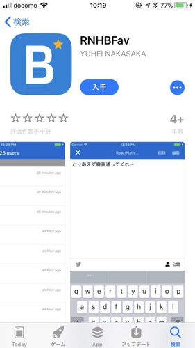 9月末くらいにAppleのストアにRNHBFavというはてぶのお気に入りフィードのビューアーアプリを申請していました。 ReactNativeにハマっていたこともありHBFavのReactNative版として作ったものです。 実装自体は割と簡単にできてあとは審査結果を待つだけの状…